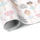 Pretty Ballerina personalised wrapping paper featuring three different ballerinas with a bouquet of flowers, ballet slippers and a crown. Custom text greeting and personalised name makes this paper great most special occasions.