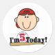 Brunette Boy Baseball 5th Birthday Classic Round Sticker