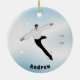 Brunette Boy Figure Ice Skating Kid Name & Year Ceramic Ornament