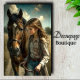 Decoupage_Boutique — Quiet strength meets timeless country charm in this evocative design featuring a young brunette girl walking her chestnut brown horse through a golden field. The weathered shirt, tousled hair, and wild-sky backdrop offer a perfect match for rustic furniture or farmhouse themes.