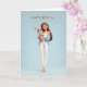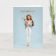 Brunette Girl in Blue Cardigan w/ White Bunny BDay Card
