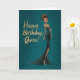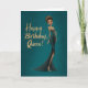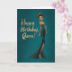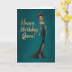 A bold and glamorous birthday card featuring a stunning woman in a sparkling emerald gown with gold accents, set against a rich teal background. Perfect for celebrating someone who carries herself with confidence, elegance, and undeniable queen energy.