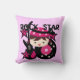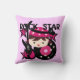 Your little rock star will love this pretty in pink Brunette Girl Rock Star pillow featuring a girl in a skull cap of pink with stars, a guitar, and record album!