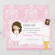 Brunette Hair Girl First Communion Damask Thank You card. A nice keepsake of the special occasion. All text can be changed to suit your own requirements.