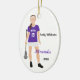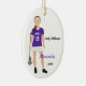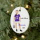 Brunette Lacrosse Player In Purple And White Ceramic Ornament