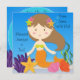 You can easily customise our Brunette Mermaid birthday invitations before ordering with your child's name and party specifics! A cute brown haired mermaid, starfish, seaweed, and bright blue water make this pretty mermaid theme invite a hit!