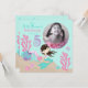 Little mermaid fifth birthday invitation card with underwater creatures.