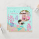 Little mermaid fourth birthday invitation card with underwater creatures and a photo insert template.