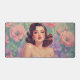 Brunette Pin-Up Pastel Flowers Desk Mat