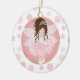 This design features a cute brown haired Fairy with pink gown, magic wand and wings, flying on a super cute pink dot background.