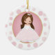 Brunette Pink Princess Ceramic Ornament