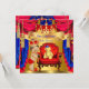 Royal Prince Baby Shower, Boy Red Crown Blue and Gold, Yellow Toy Teddy Bear and Red Chair Throne. Cute Brunette Baby Boy. Elegant Baby Shower, Couples Baby Shower boy and Red and blue Curtains Drapes Tassels invitation. new baby boy. Vintage Baby Shower.