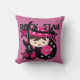 Brunette haired girl rock star design T-shirts, mugs, bags, buttons, magnets, keychains, stickers, cards, mousepads, clocks, andmore featuring pink and black guitar, record album, stars, musical notes, and a brunette girl in skull cap.