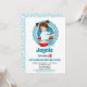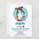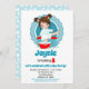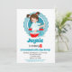 This girl's birthday invitation features an adorable Brunette girl dipping her feet in pedicure water with bubbles everywhere. Turquoise, red and white.