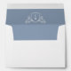 BRUNSWICK CREST, wedding invitation envelope. Features, white botanical floral crest on dusty blue color, inside lining and return address template on back flap. Individual addressing of these envelopes is not available, only sold in packs and cannot be printed individually.