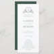BRUNSWICK CREST, wedding program. Features, elegant green typography and botanical greenery and floral adorned crest on front with white typography and green background colour on back.
