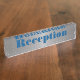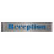Metallic looking desk nameplate done in a brushed aluminium look. The bold blue text is ready to personalise to read anything you want. Great for any business.