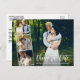 Modern Brush Script Change The Date Wedding Postponed Couple 4 Photo Collage Postcard