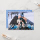 Modern Brush Script Merry Christmas Family Photo Card - Blue Snow Back