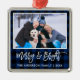 Modern Brush Script Blue Plaid Merry and Bright Family Photo Ornament