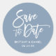 Modern Brush Script Save The Date Wedding Engagement Announcement Dusty Blue Envelope Seals