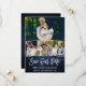 Brush Script Blue Wood 4 Photo Save Our Date Card