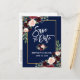 Brush Script Burgundy Blue Floral Save the Date Announcement Postcard