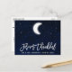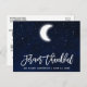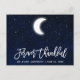 Modern Brush Script, Celestial Wedding Forever Thankful, Thank You postcard. Watercolor blue night sky with stars and the moon.