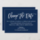 Modern Brush Script Change The Date Wedding Postponed Card Navy Blue