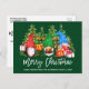 Brush Script Christmas Lights Gnomes Green Postcard