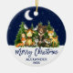 Brush Script Christmas Woodland Animals Blue Ceramic Ornament