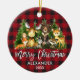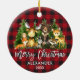 Brush Script Christmas Woodland Animals Plaid Ceramic Ornament