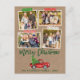 Modern Brush Script Merry Christmas 4 Photo Collage Holiday Postcard includes Craft Tape and Watercolor Vintage Red Truck with Christmas Tree. Rustic Kraft Paper.