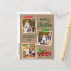 Modern Brush Script Merry Christmas 3 Photo Collage Holiday Postcard includes Craft Tape and Watercolor Vintage Red Truck with Christmas Tree. Rustic Kraft Paper.