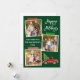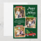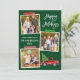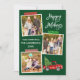 Modern Brush Script Happy Holidays 3 Photo Collage Holiday Card includes Craft Tape and Watercolor Vintage Red Truck with Christmas Tree. Forest Green Background.