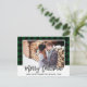 Modern Brush Script Green Plaid Couple Photo Christmas Postcard
