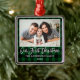 Modern Brush Script, Rustic Green Plaid Our First Christmas Family Photo Ornament