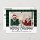 Brush Script Green Plaid Family Photo Christmas Postcard