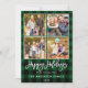 Brush Script Happy Holidays Green Plaid 4 Photo Holiday Card