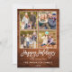 Brush Script Happy Holidays Rustic Wood 4 Photo Holiday Card