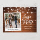 Modern Brush Script, Instant Camera Style, Couple Photo Save The Date Photo Engagement Announcement Postcard - Rustic Country Wood, String Lights