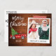 Modern Brush Script, Watercolor Vintage Red Truck with Christmas Tree, Instant Camera Style Photo Merry Christmas Postcard - Rustic Wood and Red Striped Craft Tape