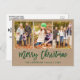 Modern Brush Script Kraft 3 Photo Family Photo Merry Christmas Holiday Postcard