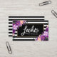 Modern Brush Script, Watercolor Purple Ultra Violet Floral, Lashes Makeup Artist Striped Business Card