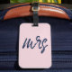 blush background with navy blue brush stroke script font "mrs" which you can customise further with your name or leave it as is. Choose between different colours and pair with "mr" luggage tag