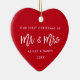 Modern Brush Script Our First Christmas as Mr. and Mrs. Red Heart Ornament - Photo Back