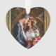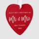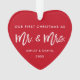 Modern Brush Script Our First Christmas as Mr. and Mrs. Red Heart Ornament - Photo Back