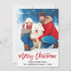 Brush Script Red Merry Christmas Star Photo Holiday Card