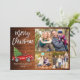 Modern Brush Script Watercolor Vintage Red Truck with Christmas Tree - Merry Christmas Family 3 Photo Card - Rustic Country Wood