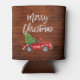 Brush Script Vintage Truck with Christmas Tree Merry Christmas Rustic Wood Can Cooler